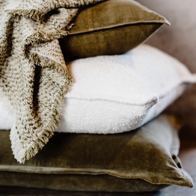 The Kanso Cushion embraces simplicity and elegance, reflecting the Japanese philosophy of "Kanso" — finding beauty in minimalism. Its stark white shade, boucle weave, and refined 1cm hem detailing create a cushion that is both crisp and effortlessly sophisticated.
